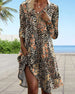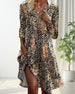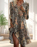 Modisches, langärmliges hüftkleid mit leopardenmuster