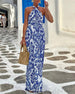 Lässiges Kleid mit V-Ausschnitt und Retro-Print