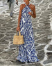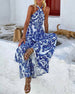 Elegantes bedrucktes Kleid mit V-Ausschnitt und Krawatte