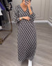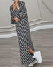 Elegantes bedrucktes Kleid mit V-Ausschnitt und Krawatte