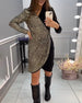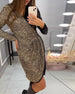 Modisches, langärmliges hüftkleid mit leopardenmuster