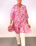 Bunt bedrucktes taschenkleid mit v-ausschnitt und halbarm