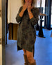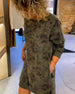 Modisches, langärmliges hüftkleid mit leopardenmuster