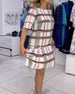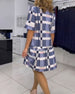 Lässiges bedrucktes kleid mit v-ausschnitt und halblangen ärmeln