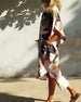 Elegantes bedrucktes Kleid mit V-Ausschnitt und Krawatte