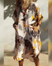 Lässiges, elegantes bedrucktes kleid mit reverstaschen