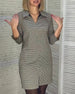 Lässiges, elegantes bedrucktes kleid mit reverstaschen