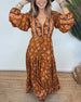Kleid mit V-ausschnitt und laternenärmeln im vintage-blumendruck
