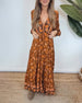 Lässiges Kleid mit V-Ausschnitt und Retro-Print
