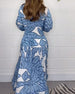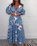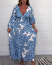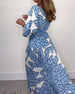 Langes Damenkleid mit V-Ausschnitt und bedruckter Taille