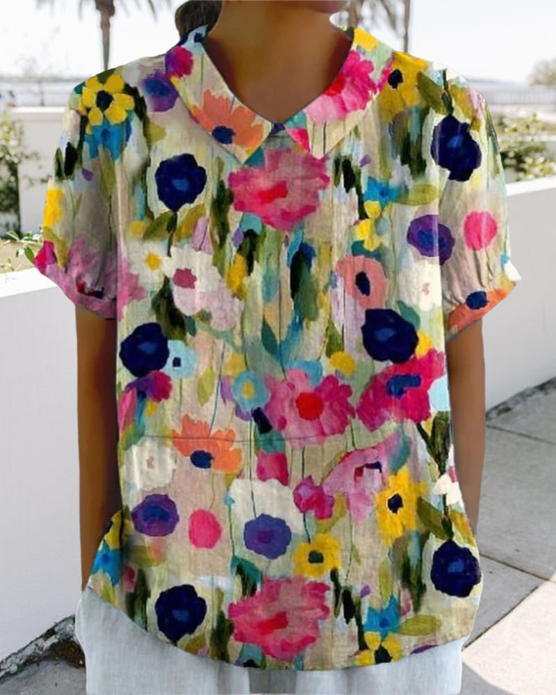 -50% Lässige bluse mit revers-blumendruck
