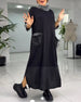 Einfarbiges Kleid mit Patchwork-Ärmeln