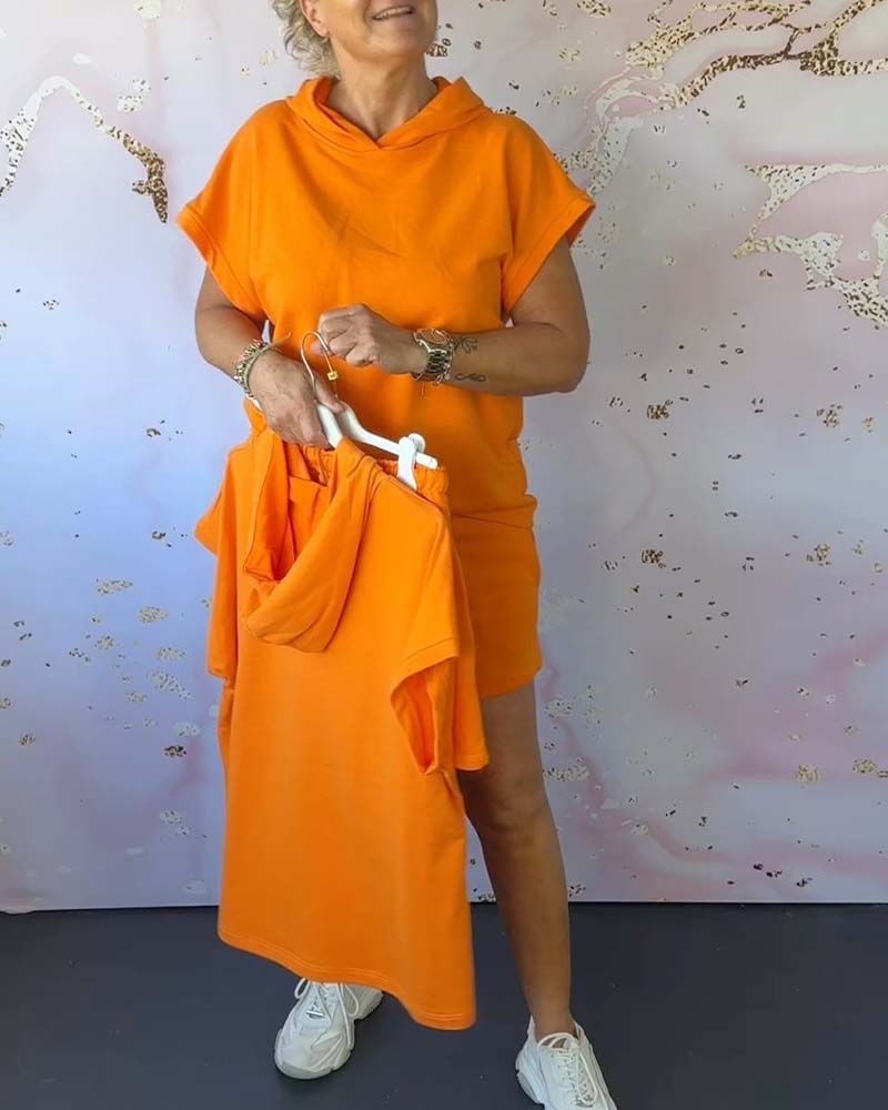 Lockeres, einfarbiges set mit kapuze und kurzen ärmeln