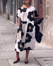 Lässiges, elegantes bedrucktes kleid mit reverstaschen