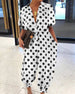 Lässiges bedrucktes kleid mit v-ausschnitt und halblangen ärmeln