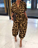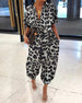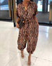 Modisches, langärmliges hüftkleid mit leopardenmuster