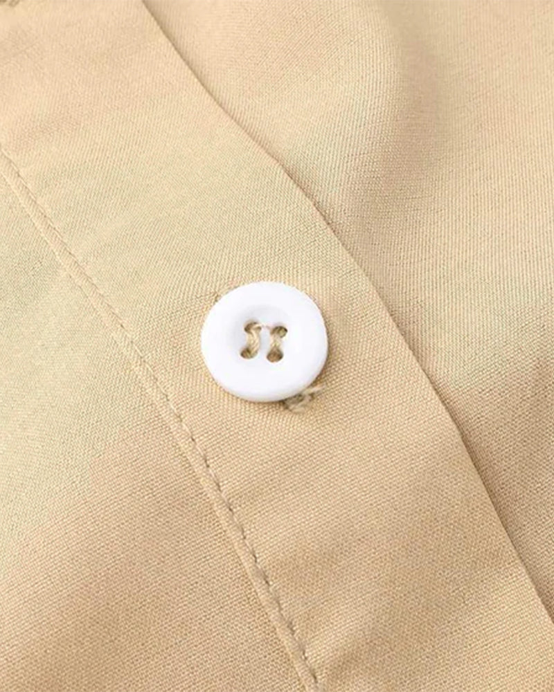Lässiges, elegantes bedrucktes kleid mit reverstaschen