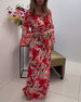 Elegantes bedrucktes Kleid mit V-Ausschnitt und Krawatte