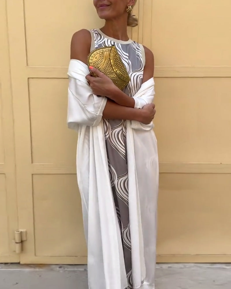 Setzen Mantel Weste Modedruck Kleid Zwei Teile