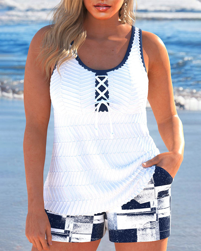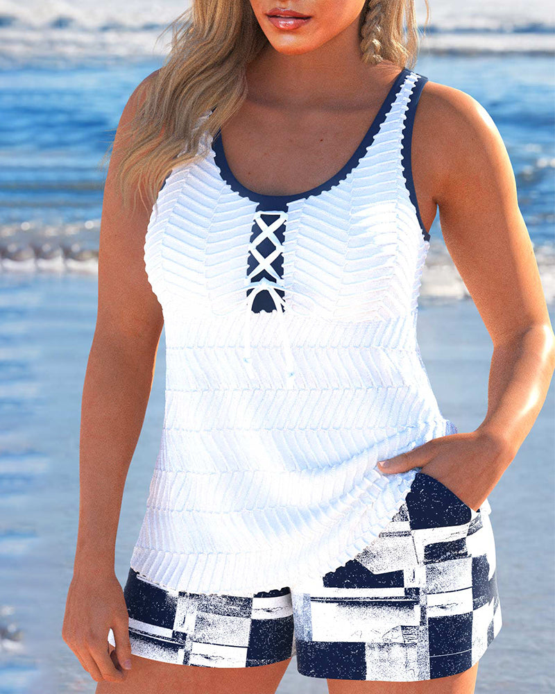 Tankini-Badeanzug mit Aufdruck und Schleife