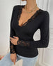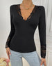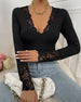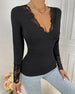 Langarm-Spitzenoberteil mit V-Ausschnitt