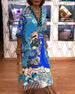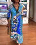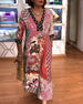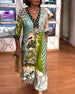 V-Ausschnitt Kleid Mit Vintage-Druck Und Schlitz-Design