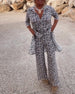 Elegantes bedrucktes Kleid mit V-Ausschnitt und Krawatte