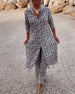 Lässiges, elegantes bedrucktes kleid mit reverstaschen