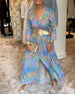 Elegantes bedrucktes Kleid mit V-Ausschnitt und Krawatte