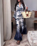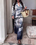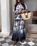 Zweiteiliger Anzug mit Laternenärmeln und Pflanzenfarbverlaufsdruck
