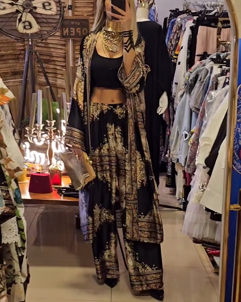 Zweiteiliges Set aus Mantel und Hose mit Vintage-Print